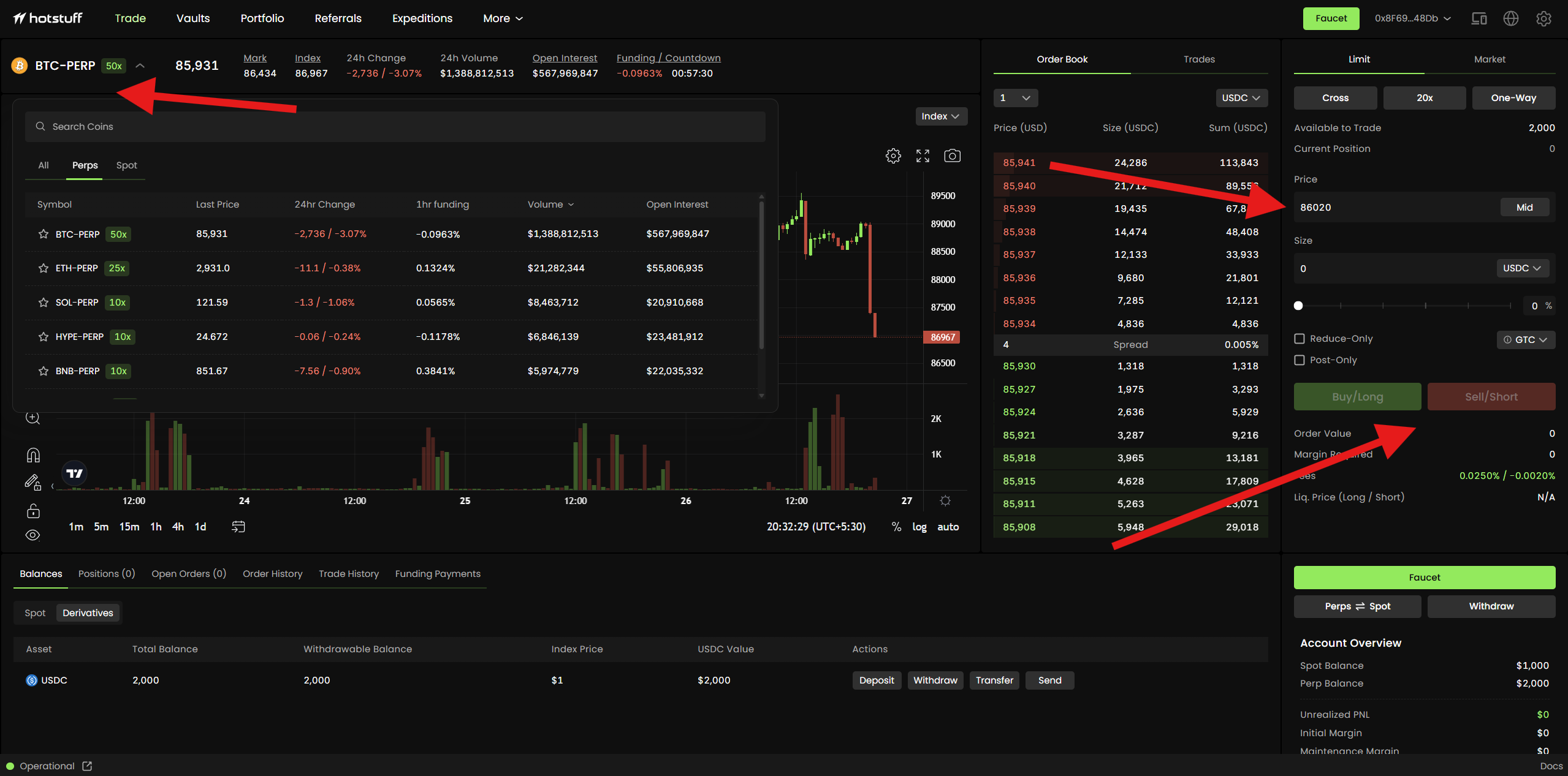 3. Start trading available Perpetuals.