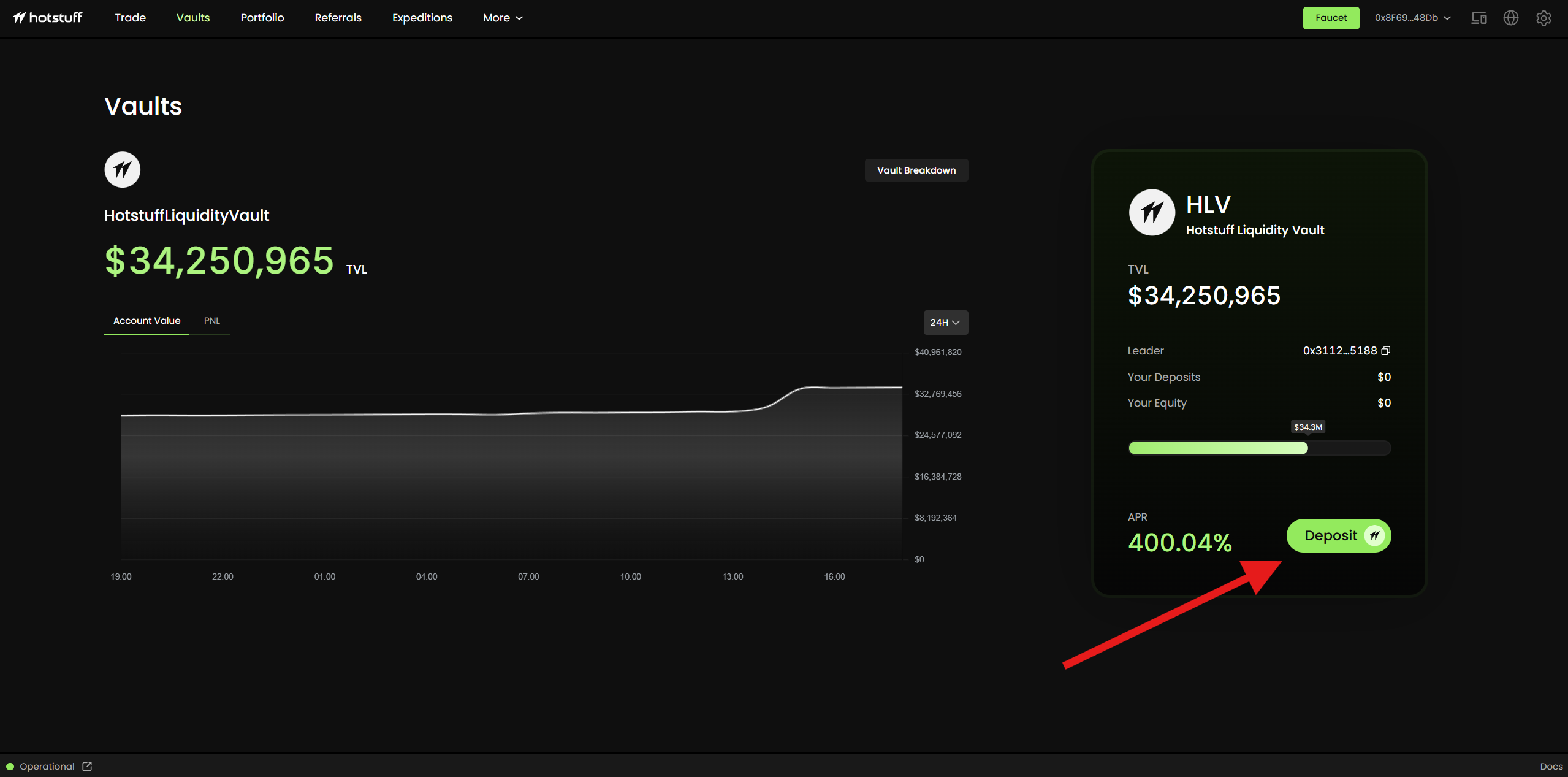 4. Deposit test stablecoins into the vault in the Vaults section.