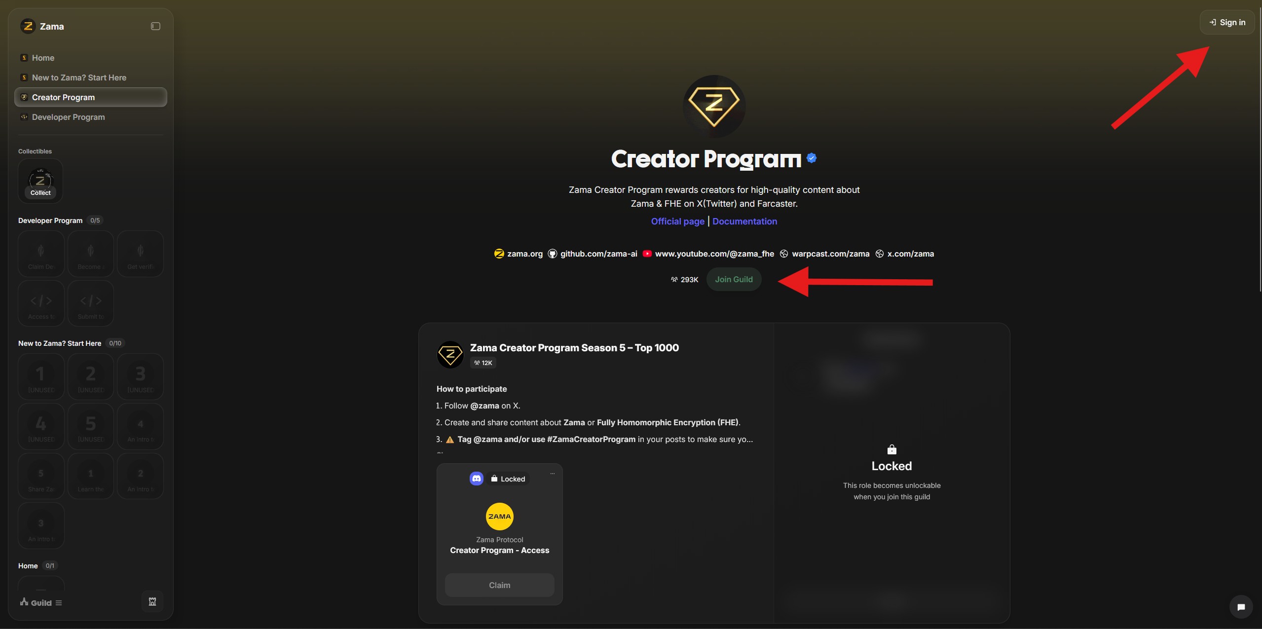 Một hoạt động khác trong Zama là kiếm vai trò thông qua Guild.