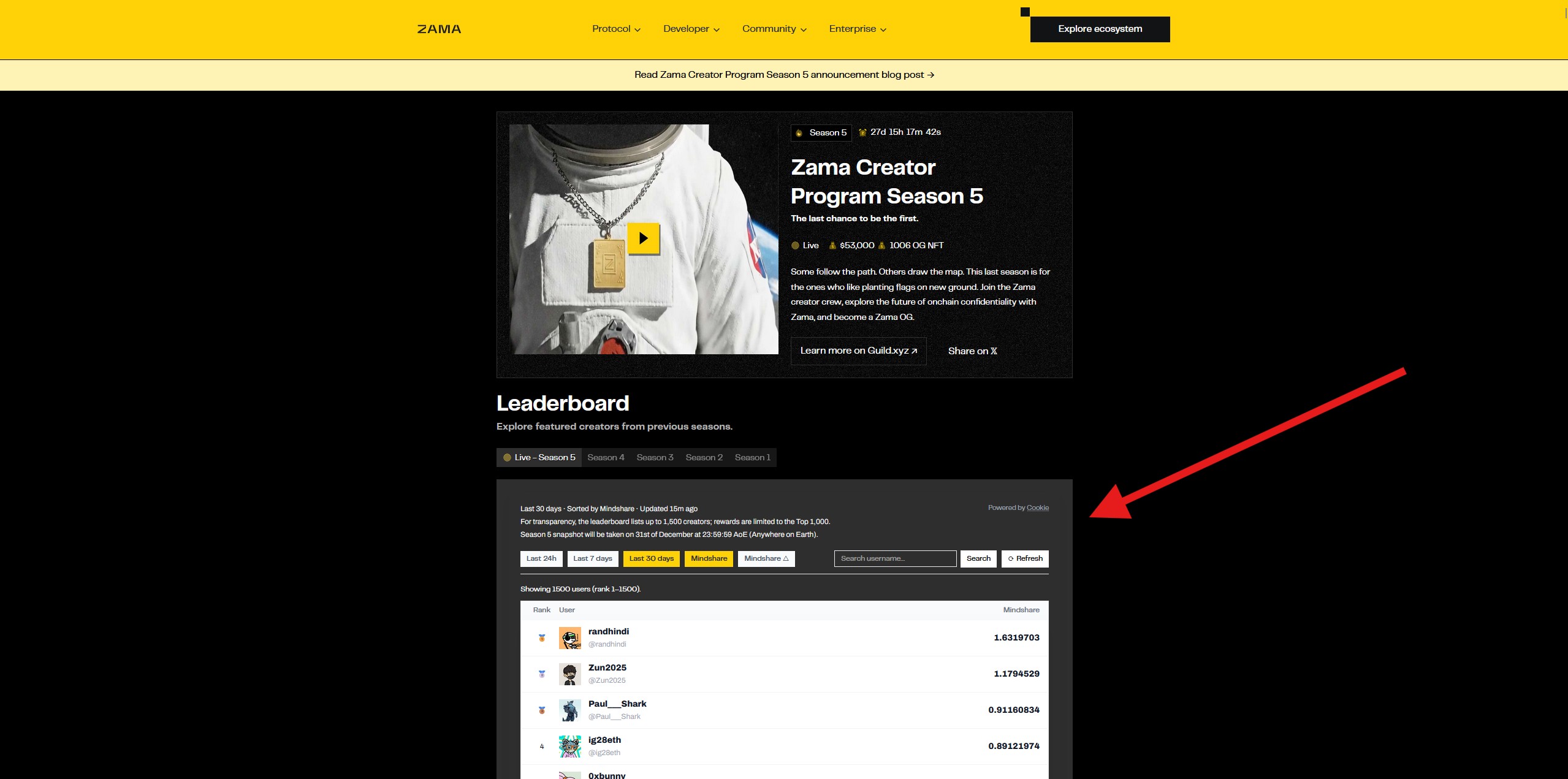 Season 4 of the Zama Creator Program has begun. We can continue to create content mentioning the project and qualify for OG NFTs. Rewards for the previous season will be announced soon.
